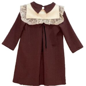 ყავისფერი კაბა კრემისფერი საყელოთი