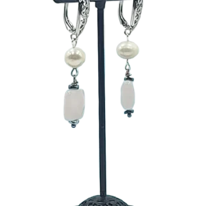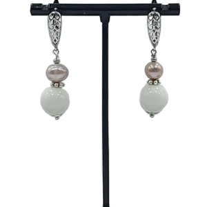 საყურე – ვარდისგერი მარგალიტი და თეთრი აგატი