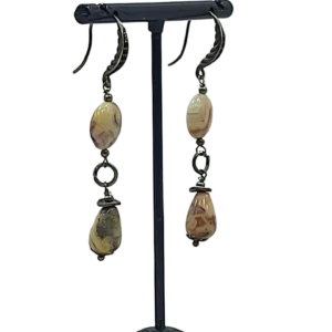 საყურე – ყვითელი, ზოლიანი აგატი ბრინჯაოში