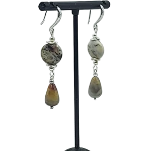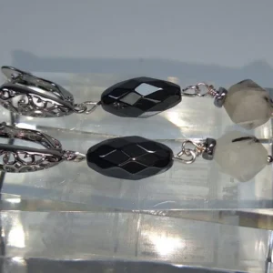საყურე – თეთრი, ზოლიანი კვარცი და ჰემატიტი