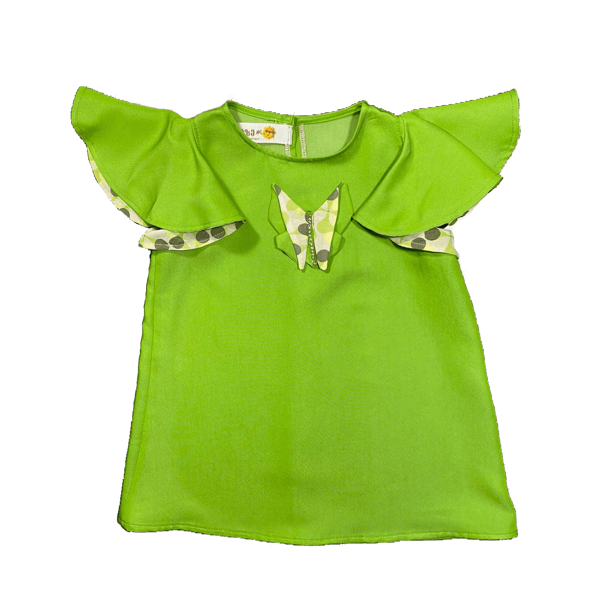 - მკერდის ხაზზე დეკორატიული პეპლის აპლიკაციით,