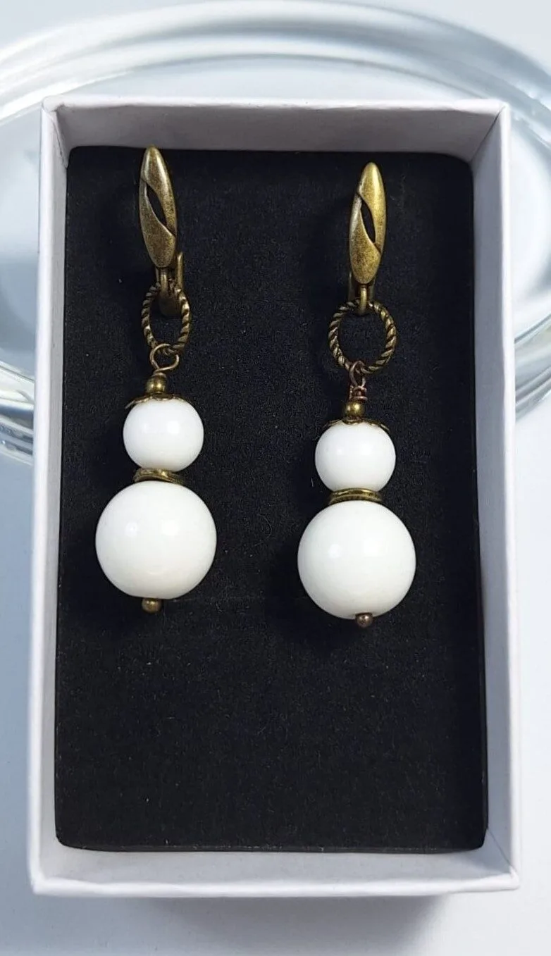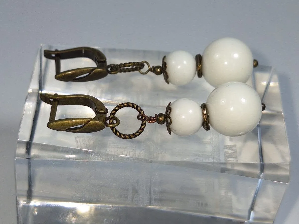 მასალა: თეთრი აგატი, ბრინჯაოსფერი უჟანგავი ფურნიტურა და ინგლისური სტილის შესაკრავი.
