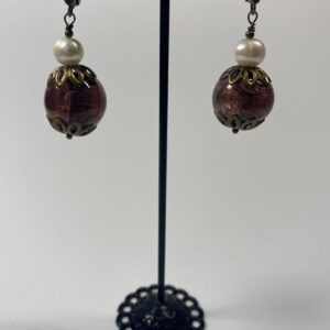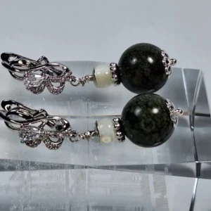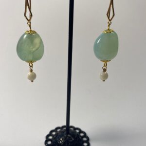 სალათისფერი კვარცის საყურე თეთრი სადაფით