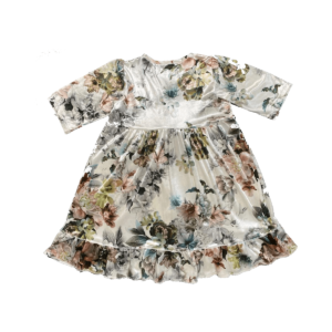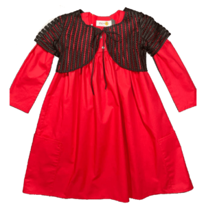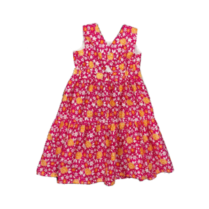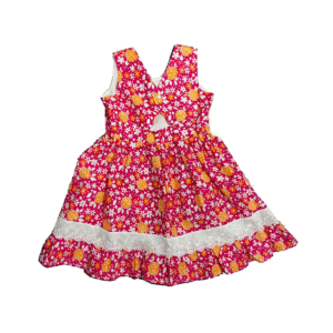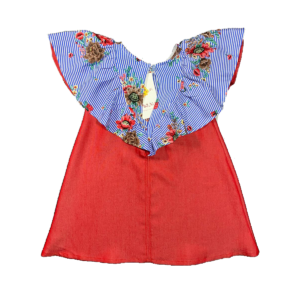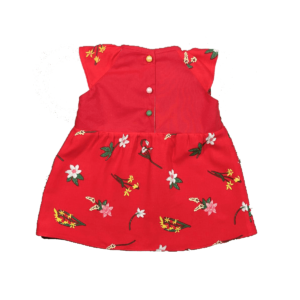 წითელ ყვავილებიანი კომბინირებული კაბა