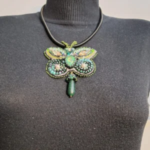 ყელსაბამი-ჩოკერი მწვანე პეპელა ხალცედონით