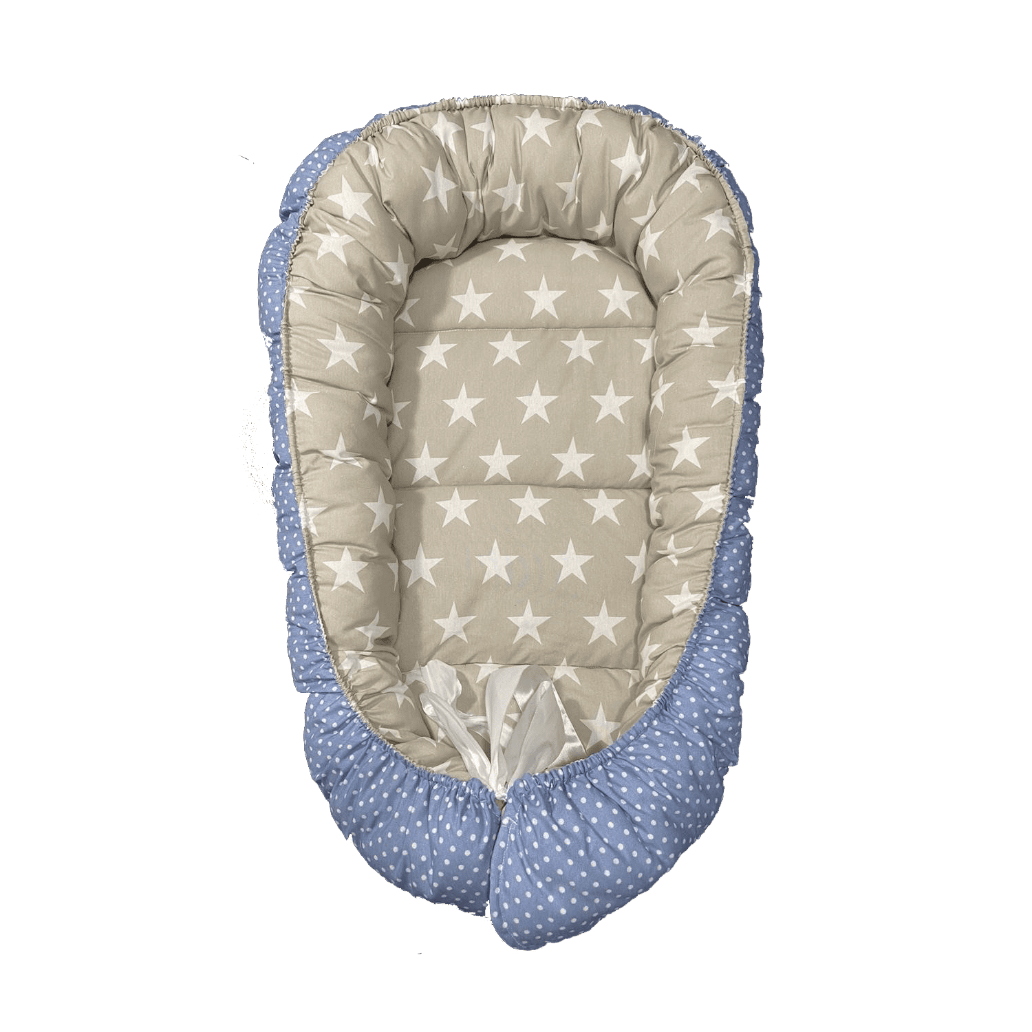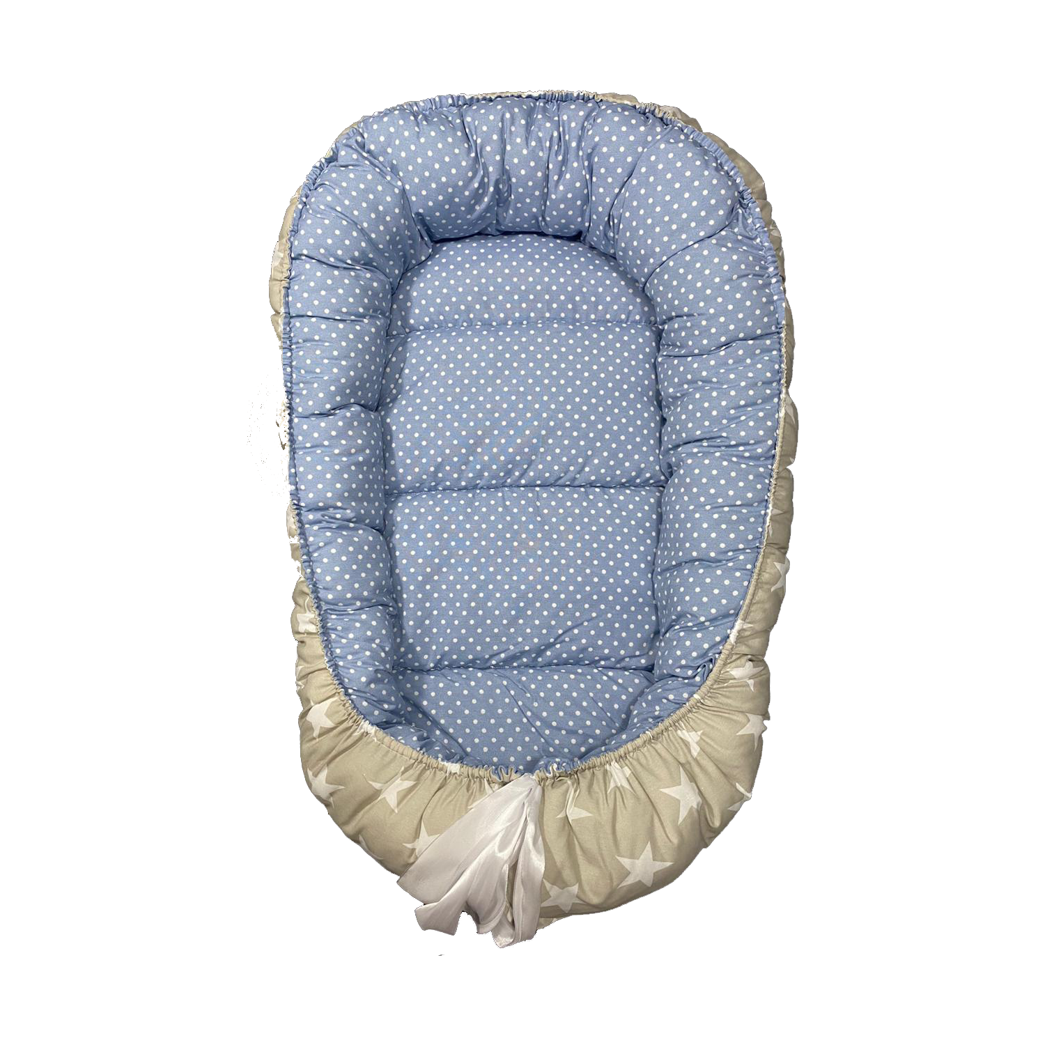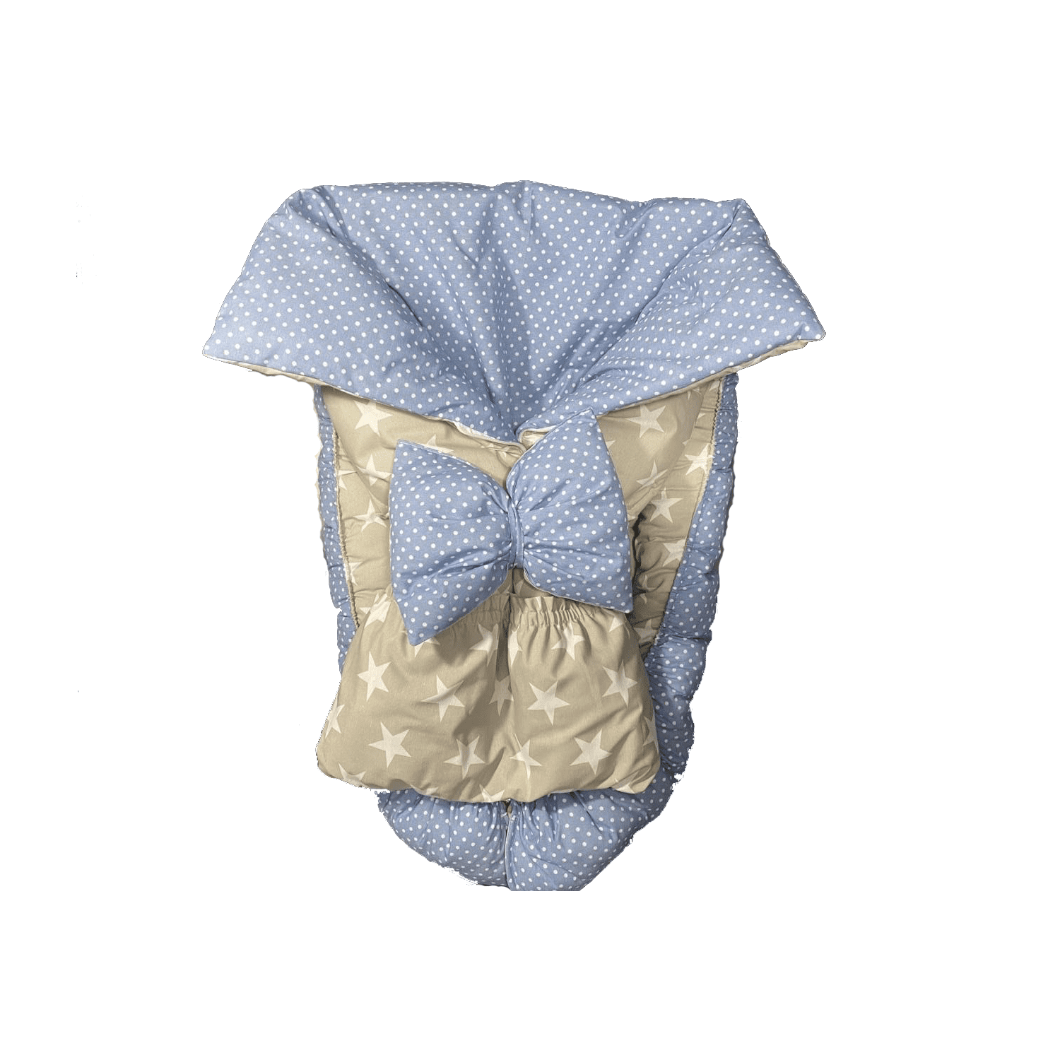 მასალა: კოტონი, შემავსებელი მასალა: სინტიპონი და ფლაიბერი. ზომები: საბანი-კონვერტი – 90/80 სმ; ბალიში – 25/15 სმ; ბუდე – 80/53 სმ.