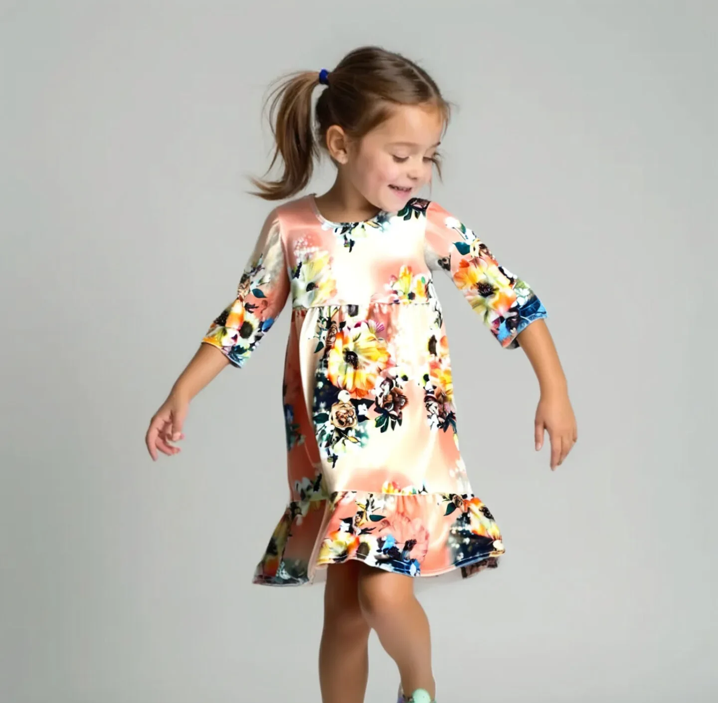 ზომები: მკლავის სიგრძე (3/4) – 24 / 29 სმ, კაბის სიგრძე (მუხლამდე) – 55 / 66 სმ.